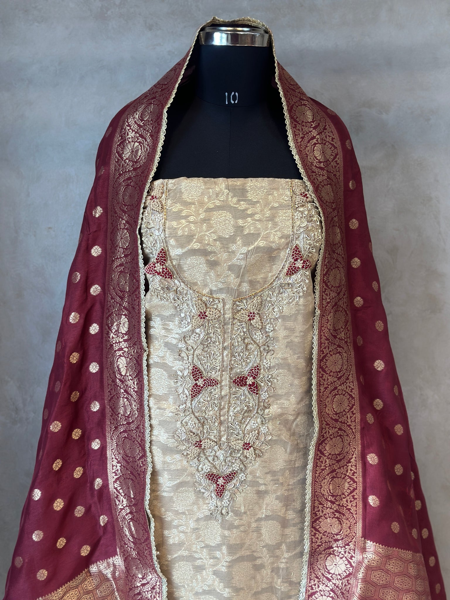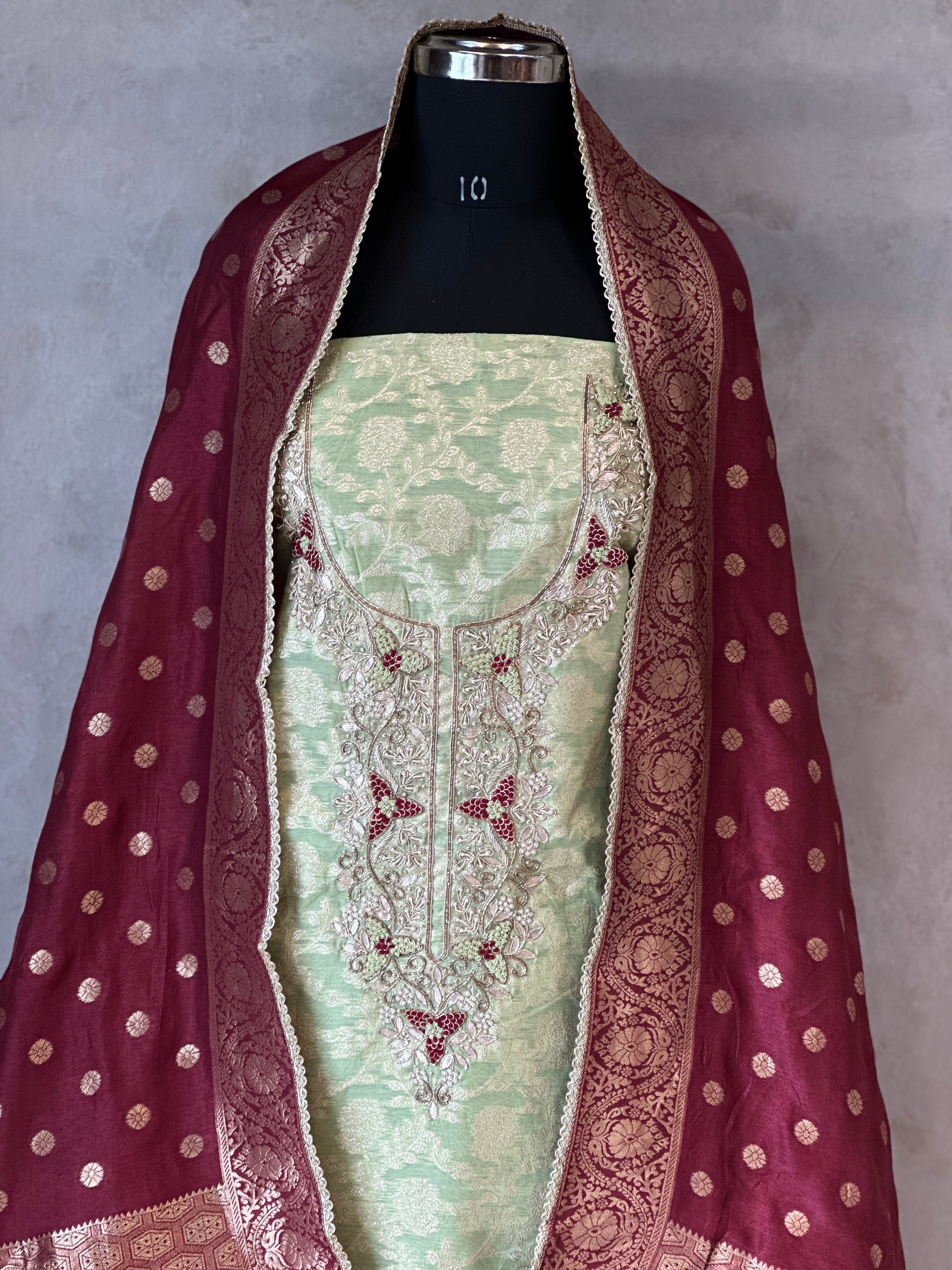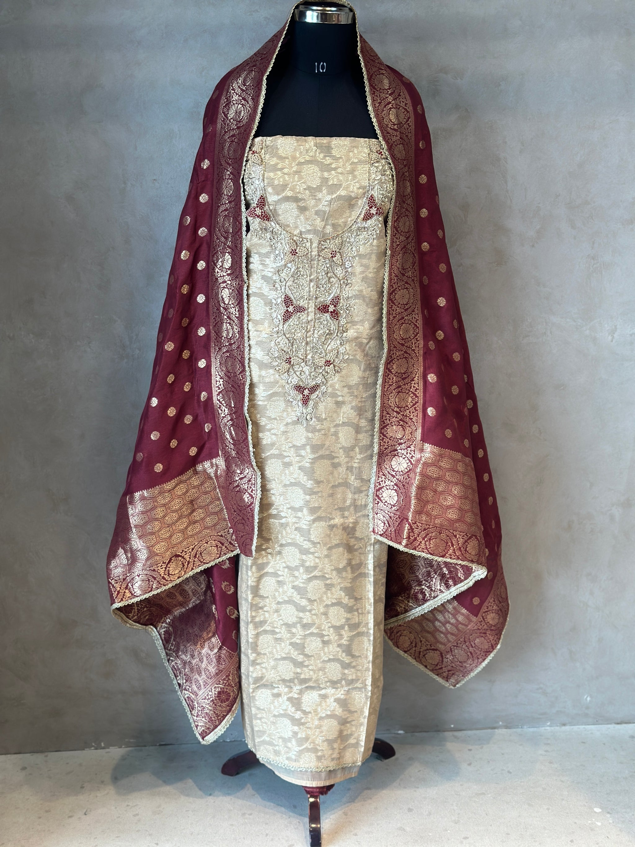 PURE ZARI SILK SUIT SET WITH HANDWORK