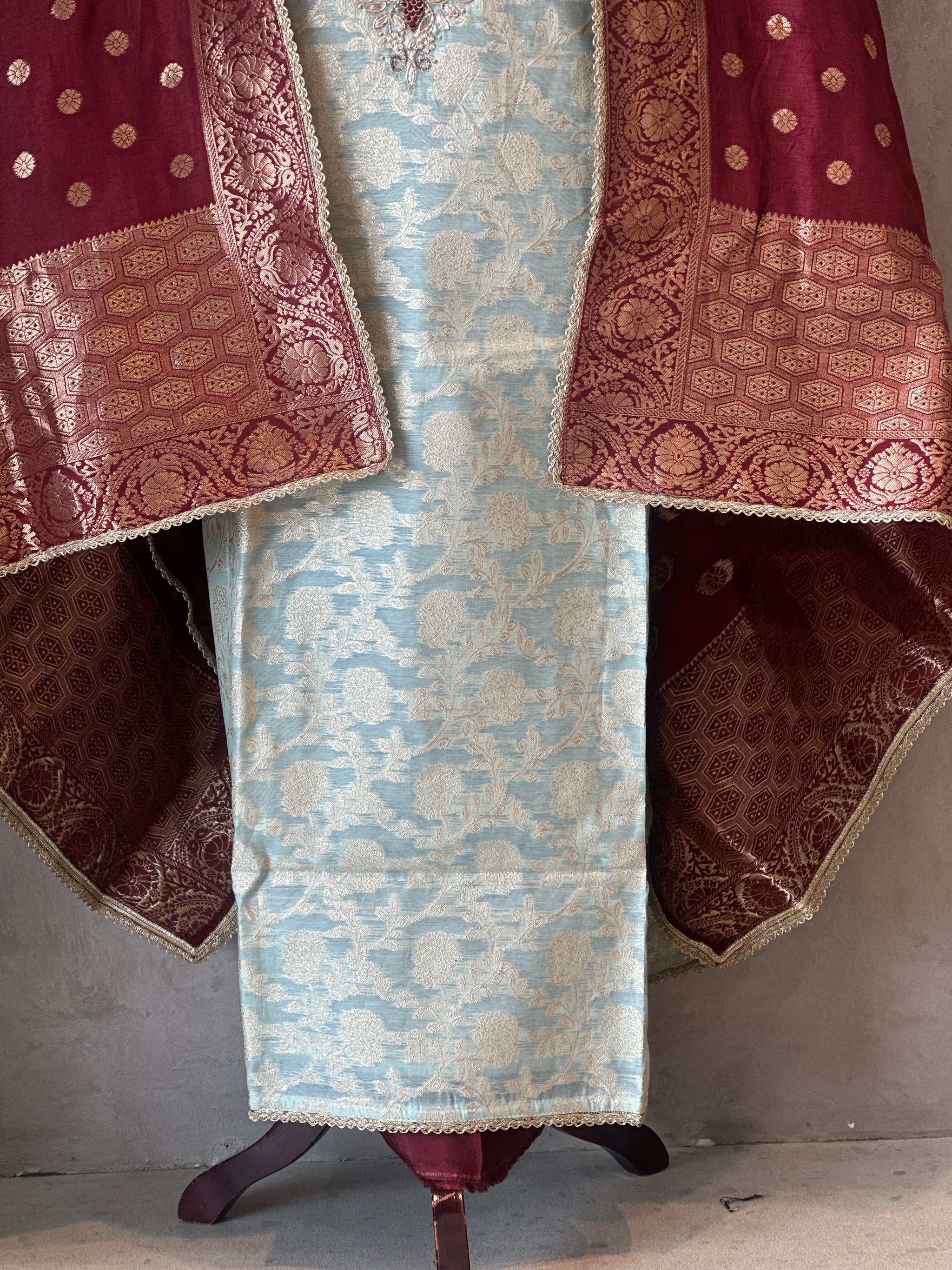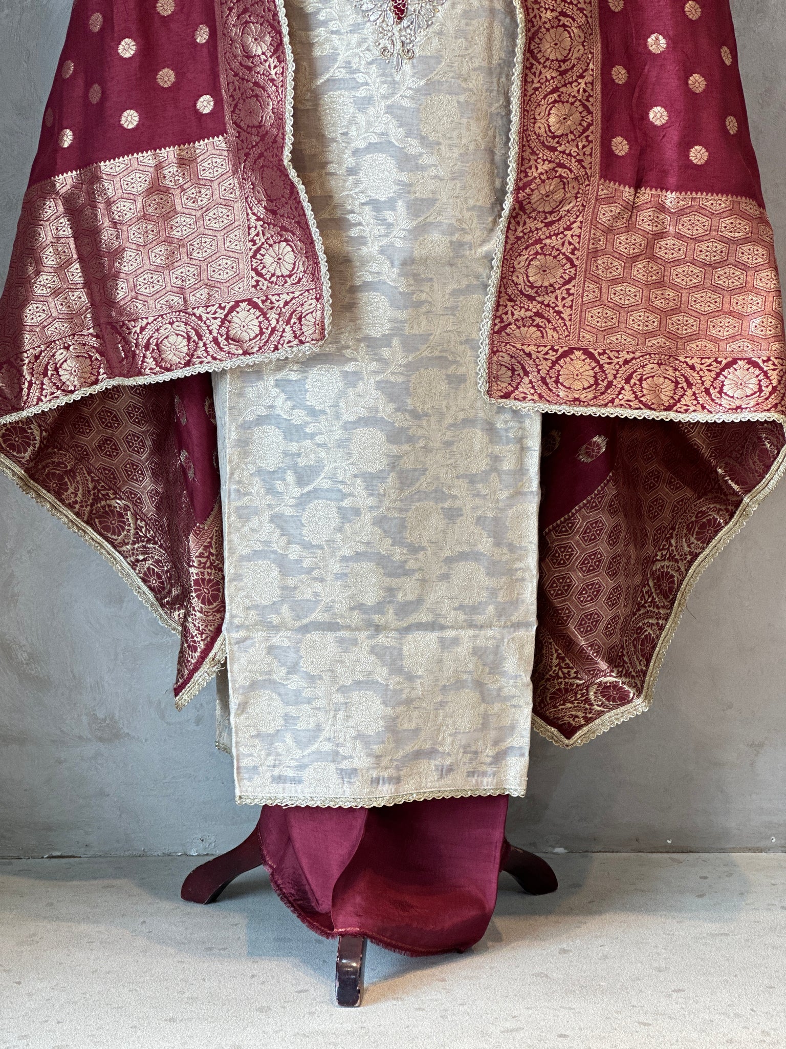 Pattern: Pure Zari Silk Suit Set With Handwork
