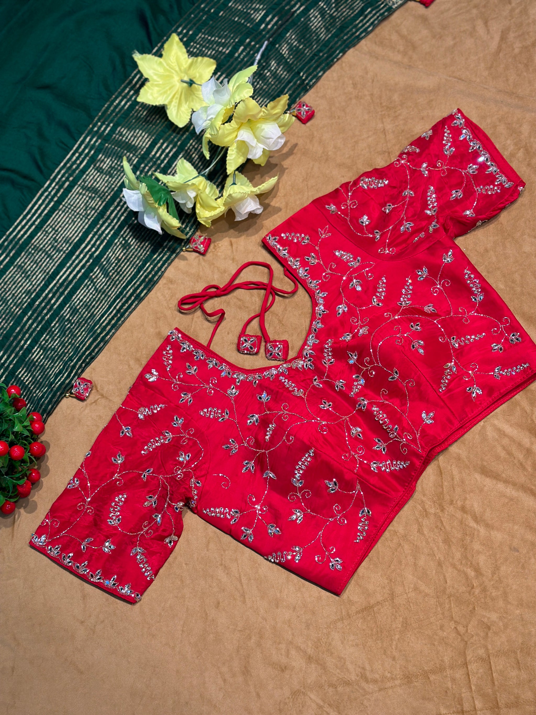 Blouse:- Pure Silk With Cutdhana & Mirror Handwork