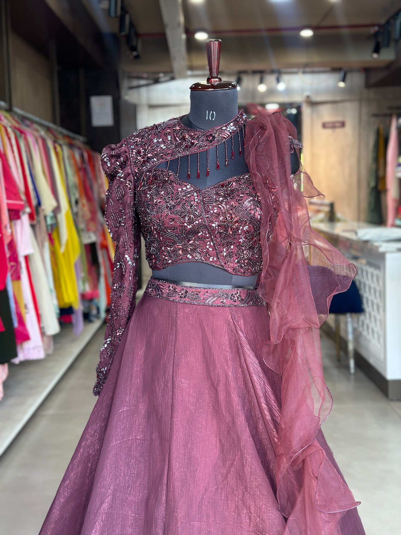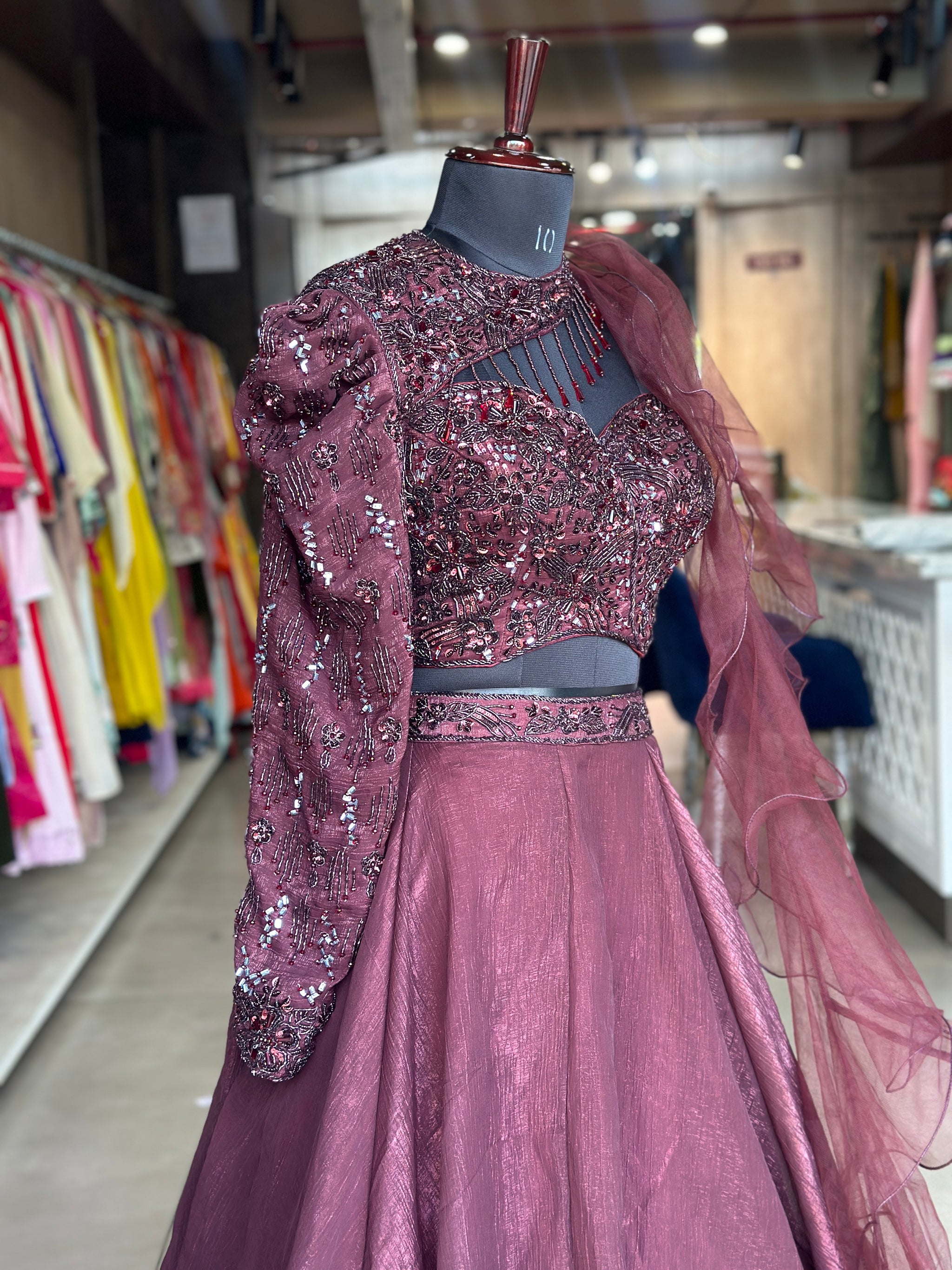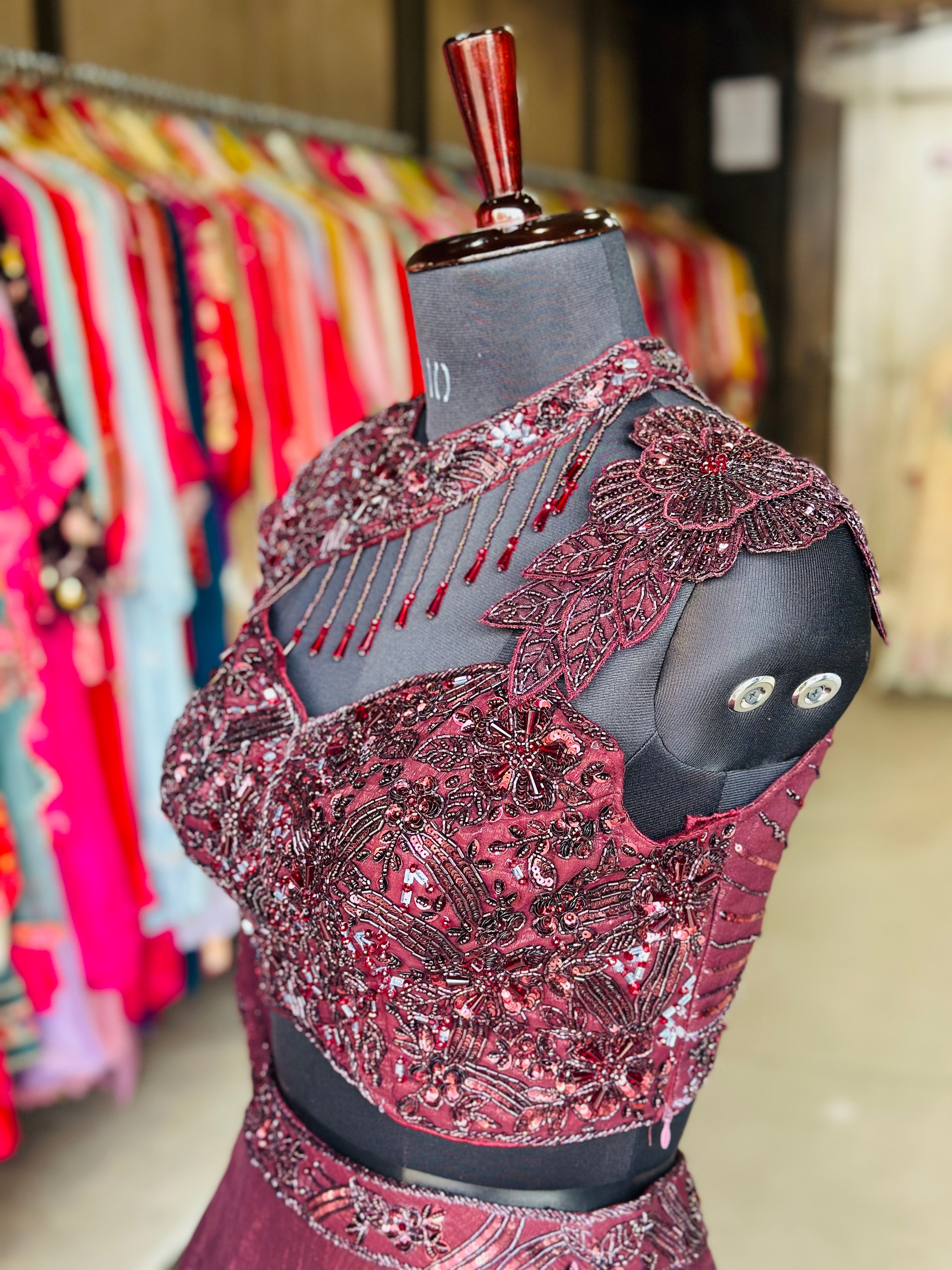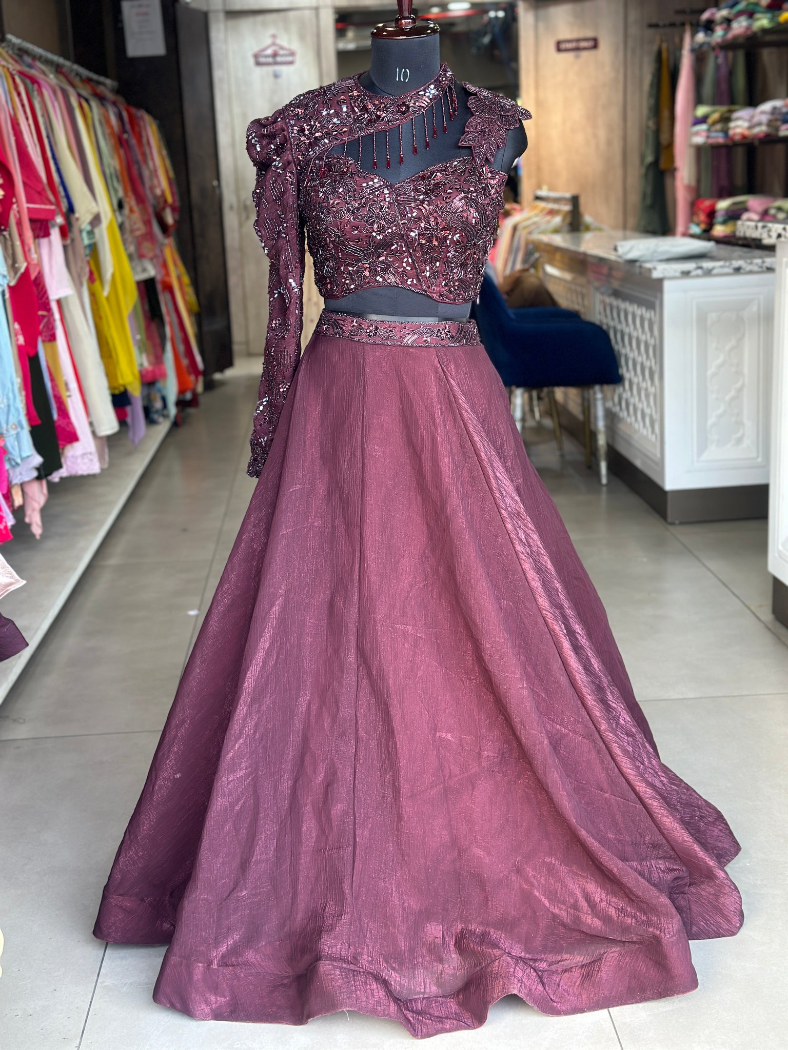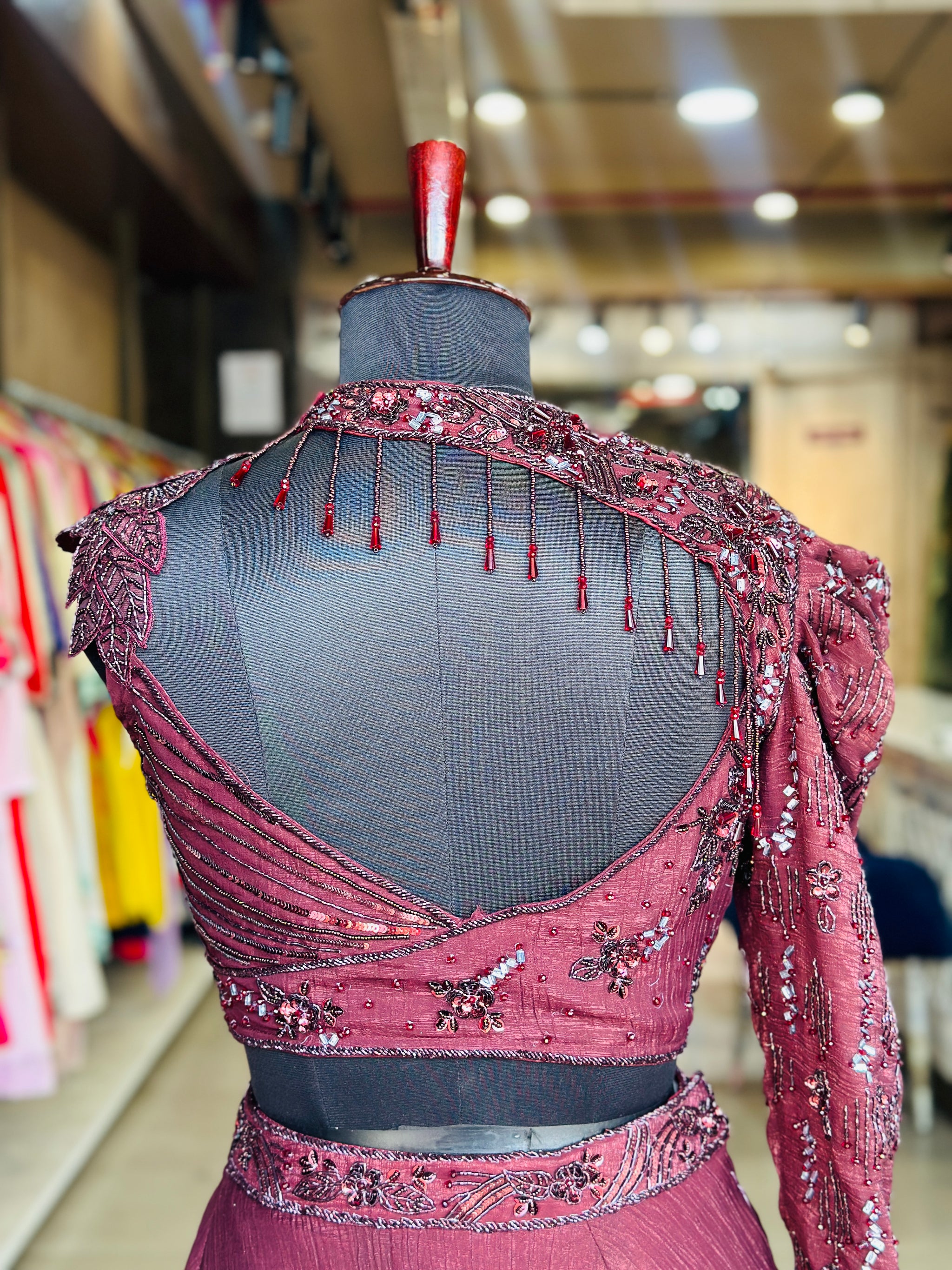 Neckline: Sweetheart Neck With Attached High Neck One Sided Sleeves Or Heavy Handwork Detailing