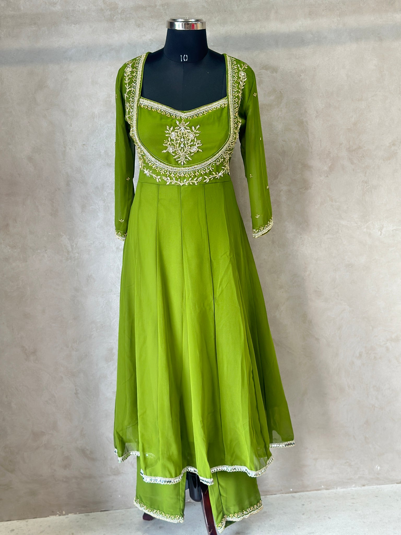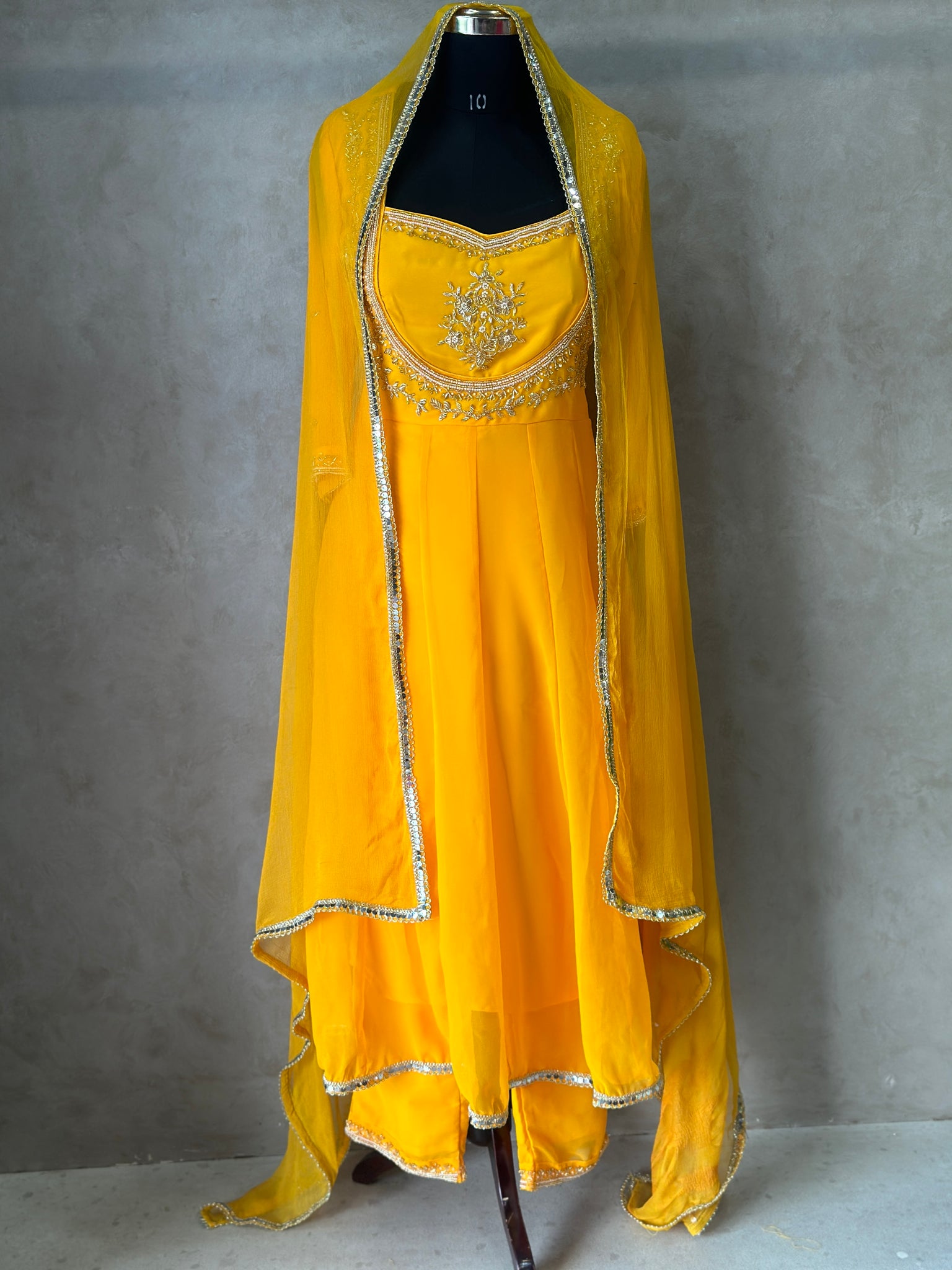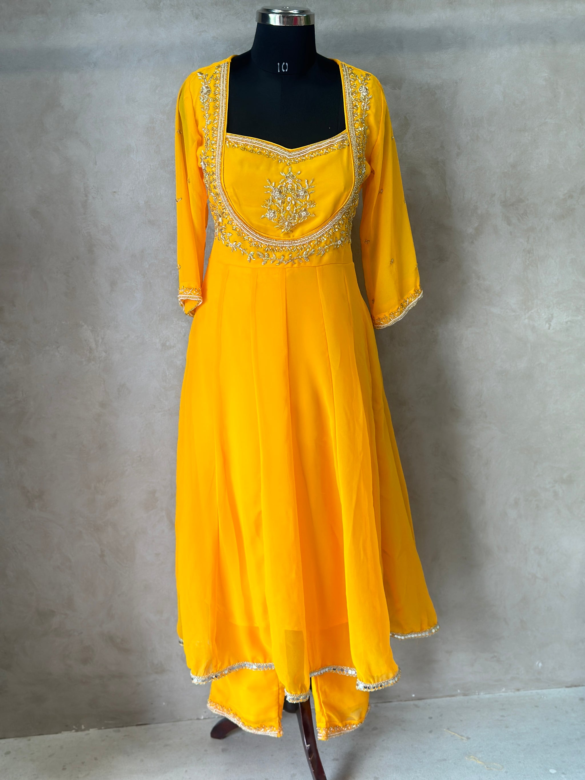 Pattern: Three Piece Heavy Handwork Anarkali Suit Set
