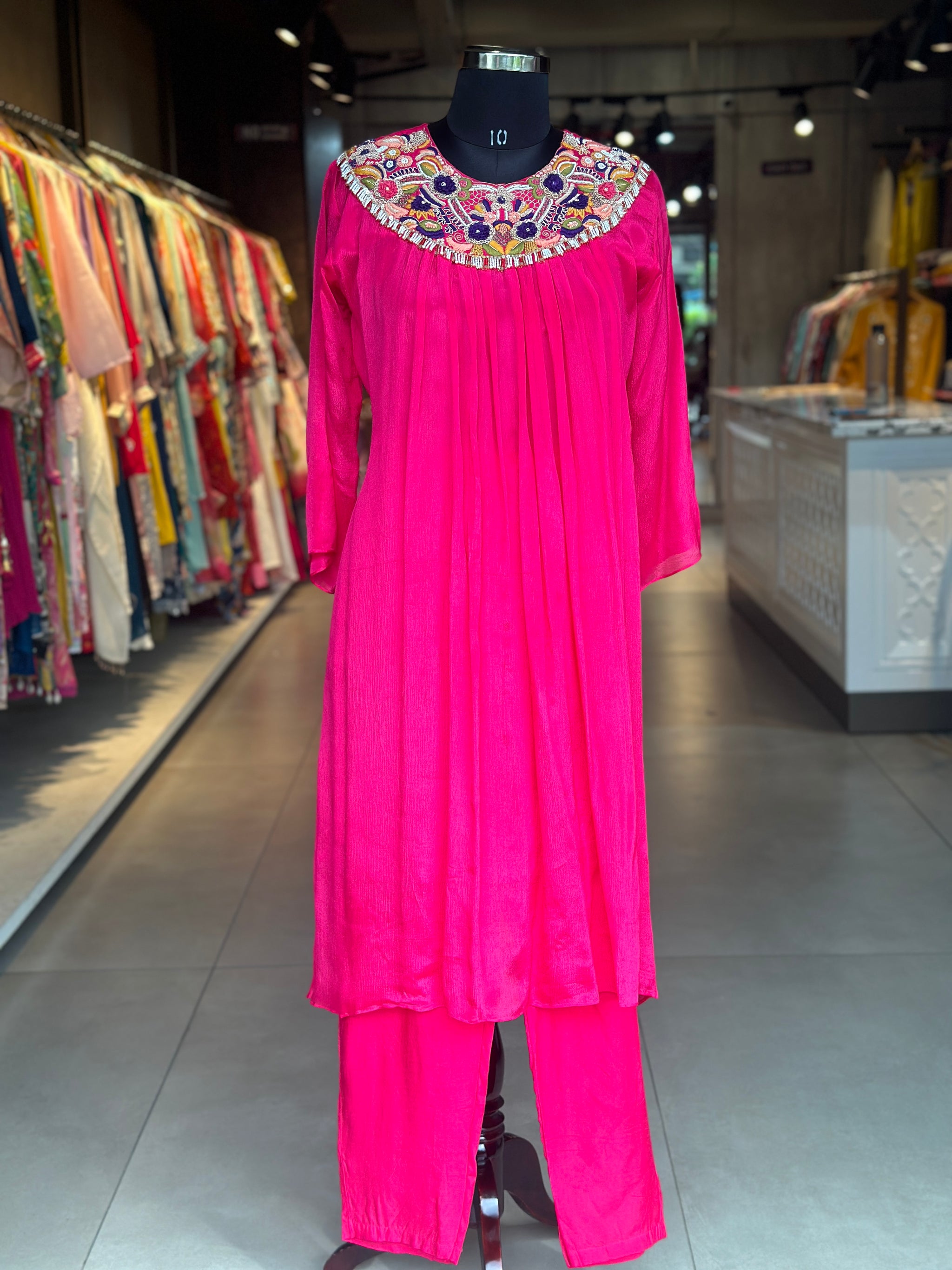 🌺Royal Pink Embroidered Kurta & Dupatta Set🌺