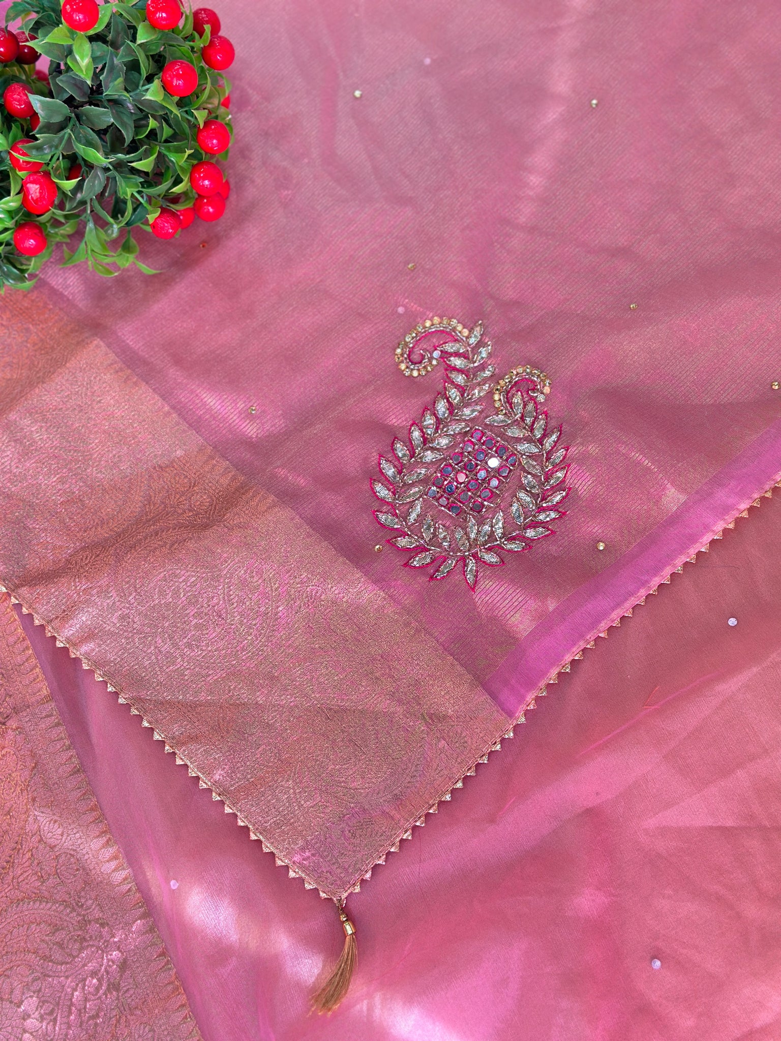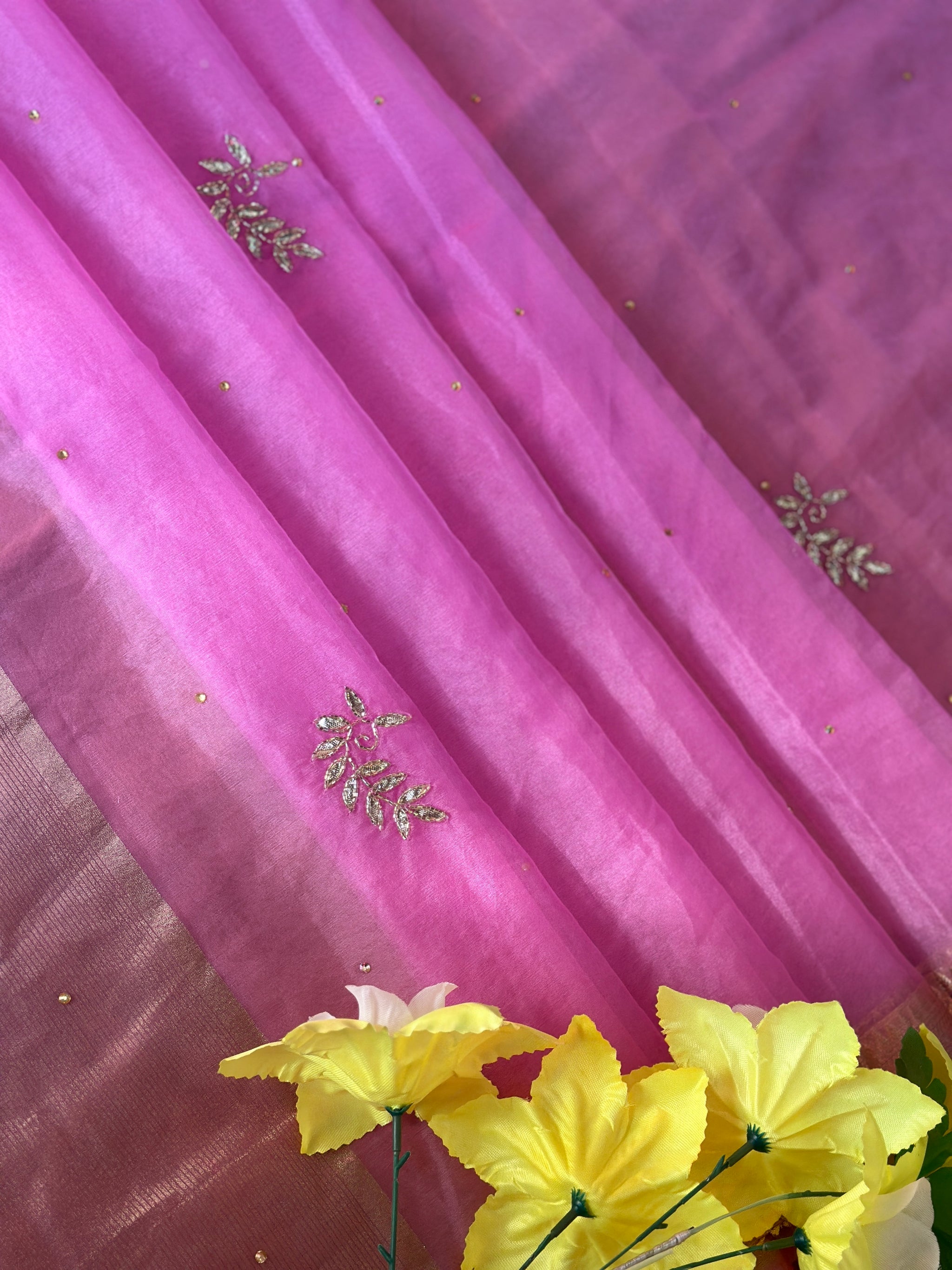 ORGANZA SAREE WITH BEAUTIFUL HANDWORK