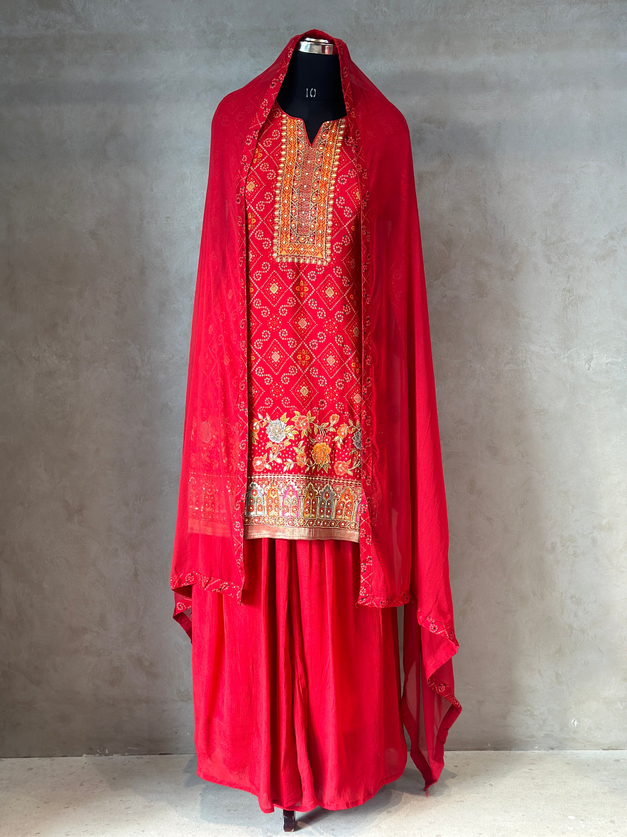Pattern: Three Piece Plazo Set With Cutdhana & Zari Handwork