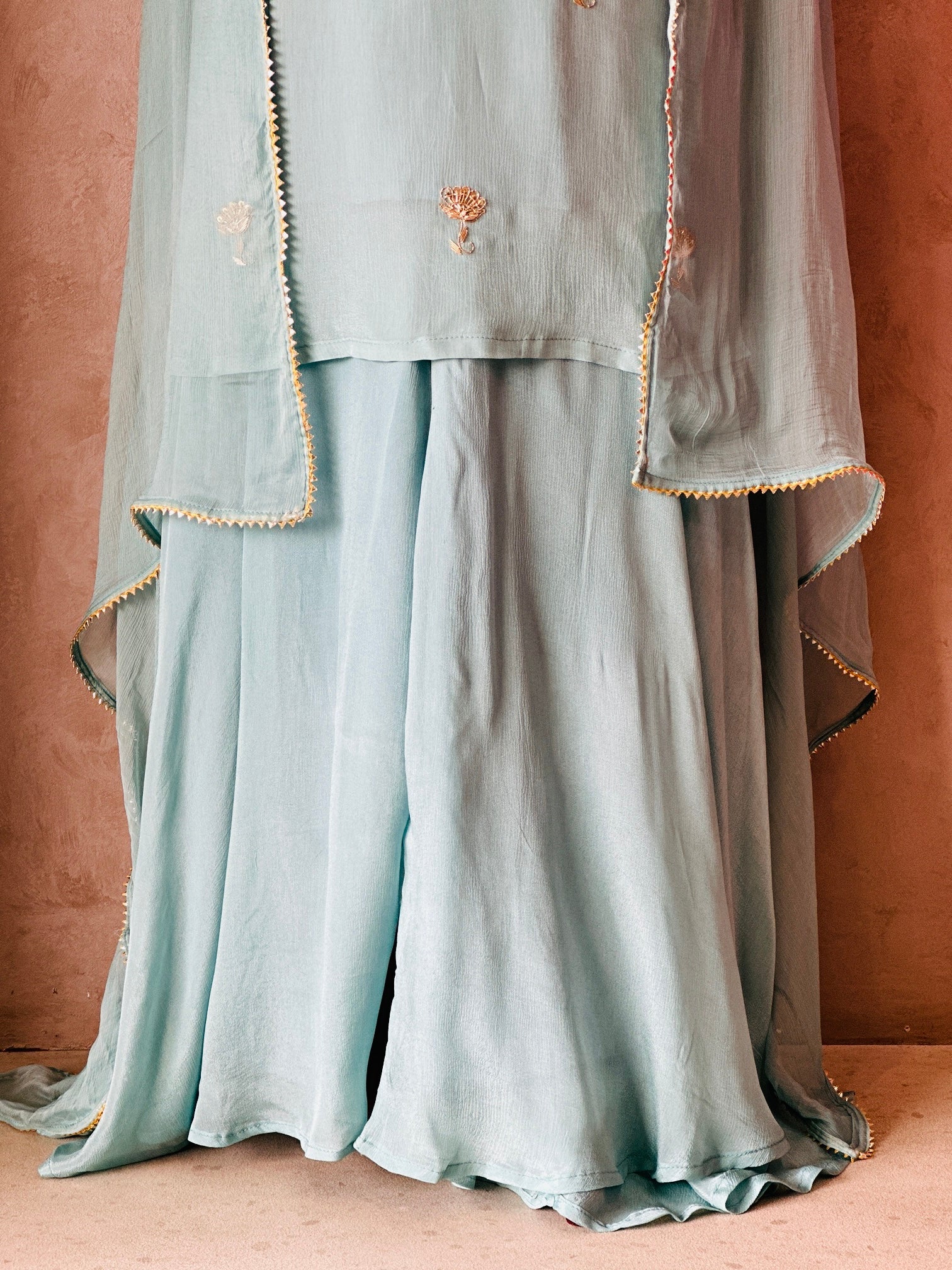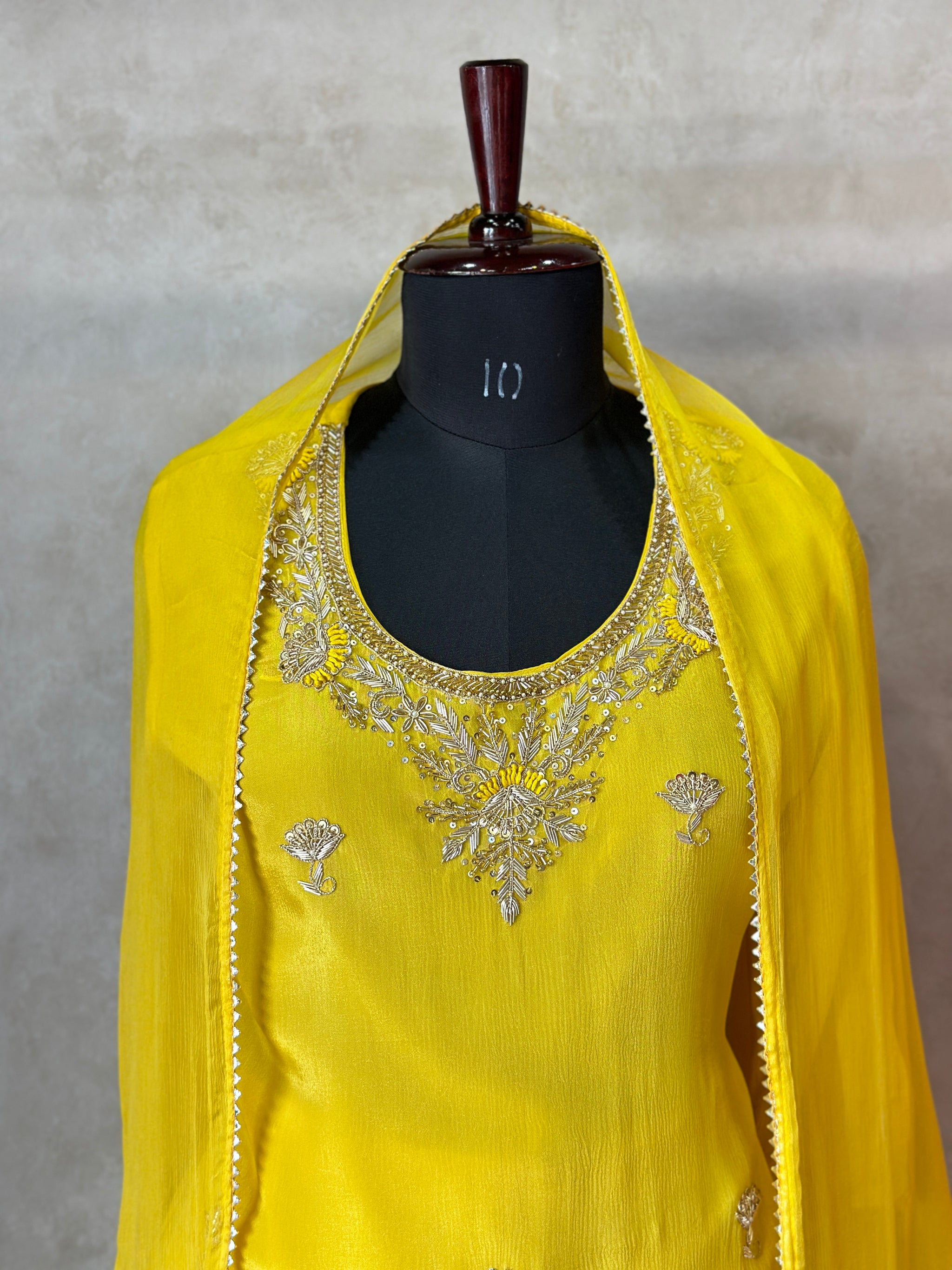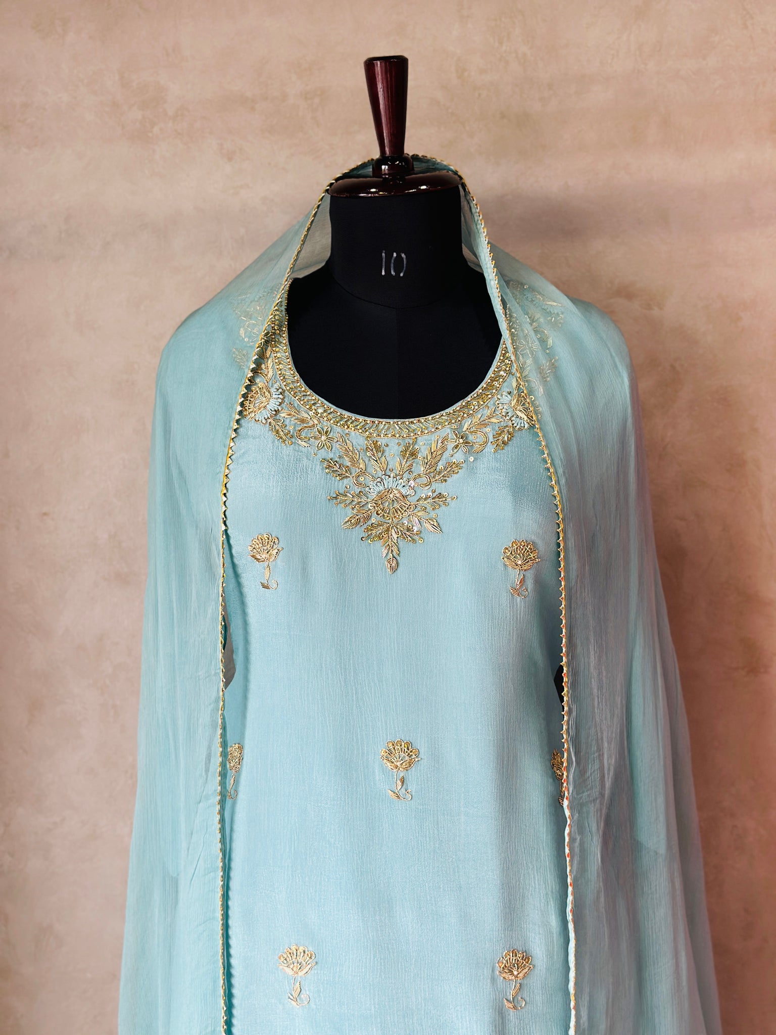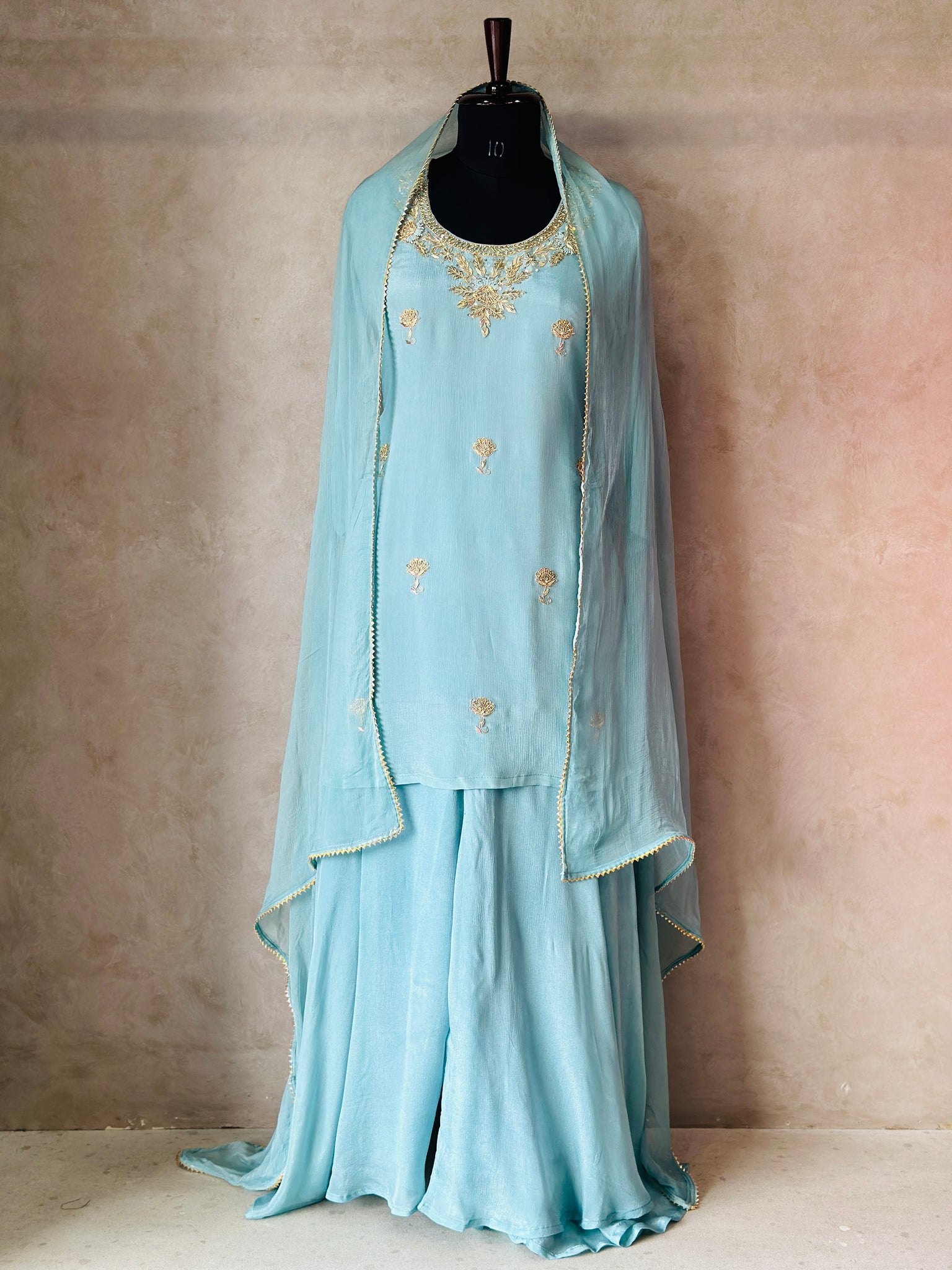 PATTERN: Three Piece Zardosi Handwork Plazo Suit