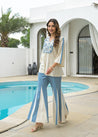 Sleeves : Three-quarter bell sleeves with contrast & Blue Pannel detailing