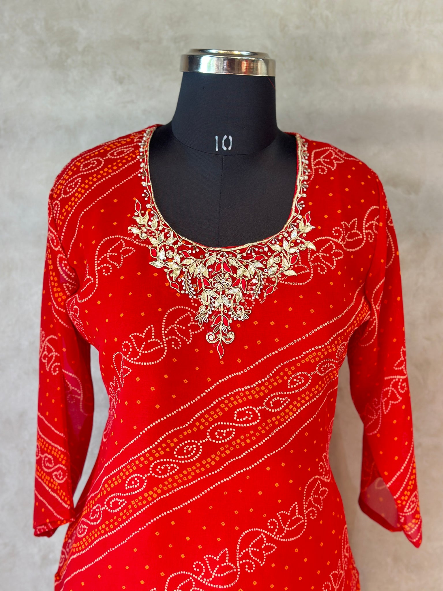 ZARDOSI HANDWORK BHANDEJ SUIT SET